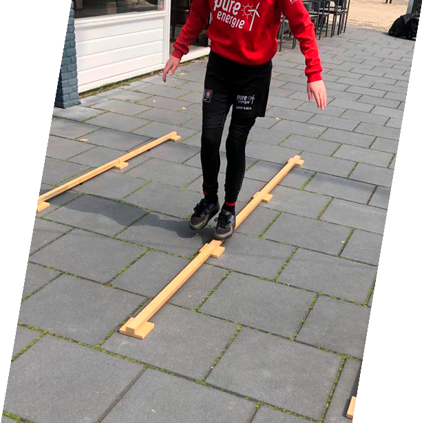 With the ktk3+ the general motor coordination skills can be measured. The test measured four different components of coordination: moving sideways (on a straight line with two wooden platforms), hopping sideways (back and forth over a beam), hand-eye coordination (throw and catch a tennis ball) and balance (on three different beam sizes). For every section it was important to take the most steps, perform the most jumps or throw and catch the most within a specific time. Point can be achieved for all of the components and with the sum of all points the MQ-score can be calculated (like IQ scores)